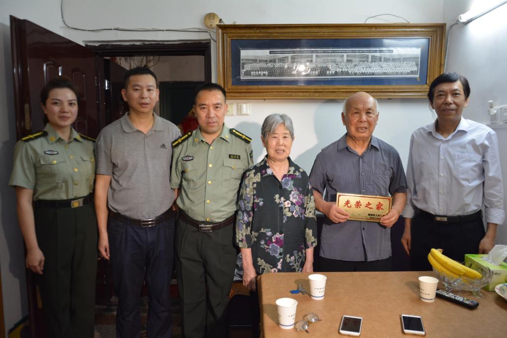 为进一步做好烈、军属和退役军人等家庭的光荣牌悬挂工作,推进太阳成官网军人荣誉体系建设、激励适龄青年参军入伍。5月,太阳成官网启动退役军人光荣牌悬挂工作。学校党委书记郭军,校长刘和云,党委委员、副校长刘铁峰等领导带领武装部、人事处和离退办等部门负责人,在近期分别为张特世、谢祥清、付华乐、兰方权、彭仁保等退役军人悬挂了光荣牌。