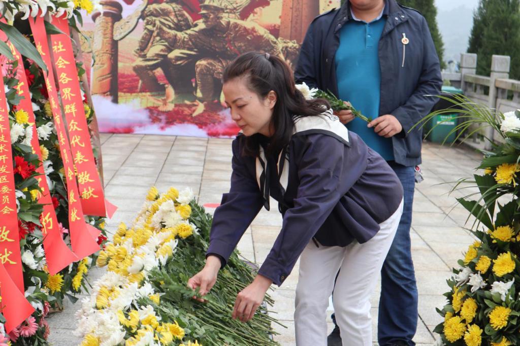最后,各位队员有秩序地为烈士献出花朵,表达对烈士们的敬仰。