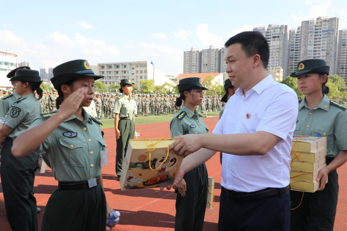 曹鑫对坚守岗位、奋斗在高温一线的军训教官们表示关怀和慰问。同时,也对参训教官及学生的昂扬精神状态表示了高度赞许,希望教官们能将百折不挠的意志、坚韧不拔的毅力和不畏艰难的吃苦精神传递给每一位新生,希望每一位学生将军训中学到的刻苦精神延续到今后的学习生活中。
