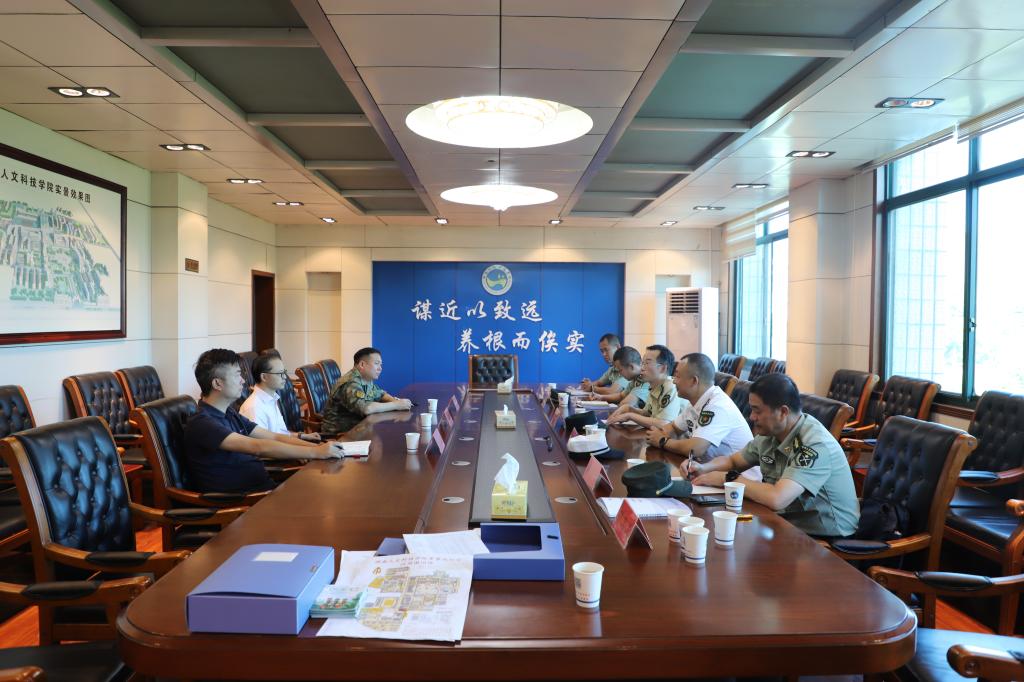 9月19日上午,省军区战备建设局副局长邱家良一行来太阳成官网检查2023级新生军训工作。党委副书记李军林,娄底军分区战备建设处处长张东友出席座谈会,学校武装部、学工部等相关职能部门负责同志参加。