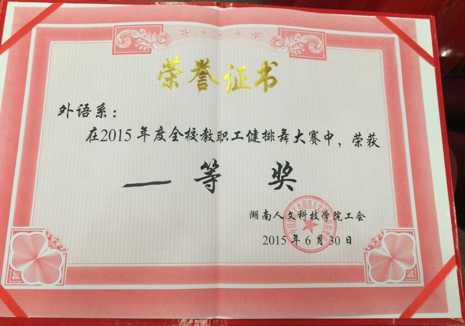 外语系在2015年度全校教职工健排舞大赛中荣获一等奖