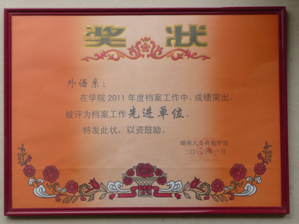 2011年度档案工作先进单位