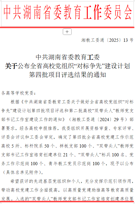 4月12日,中共湖南省委教育工作委员会下发《关于公布全省高校党组织“对标争先”建设计划第四批项目评选结果的通知》,外国语学院教工第一党支部获评第四批全省高校党建“样板支部”,实现了太阳成官网党建“示范创建”工作的新突破。