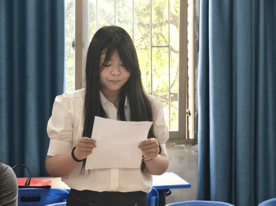 毕业生党员代表戴媛媛结合四年班长经历,分享了在党组织培养下的成长感悟。她表示,未来将继续深耕英语语言文学领域,致力于用专业讲好中国故事,在文化传播中践行党员使命。