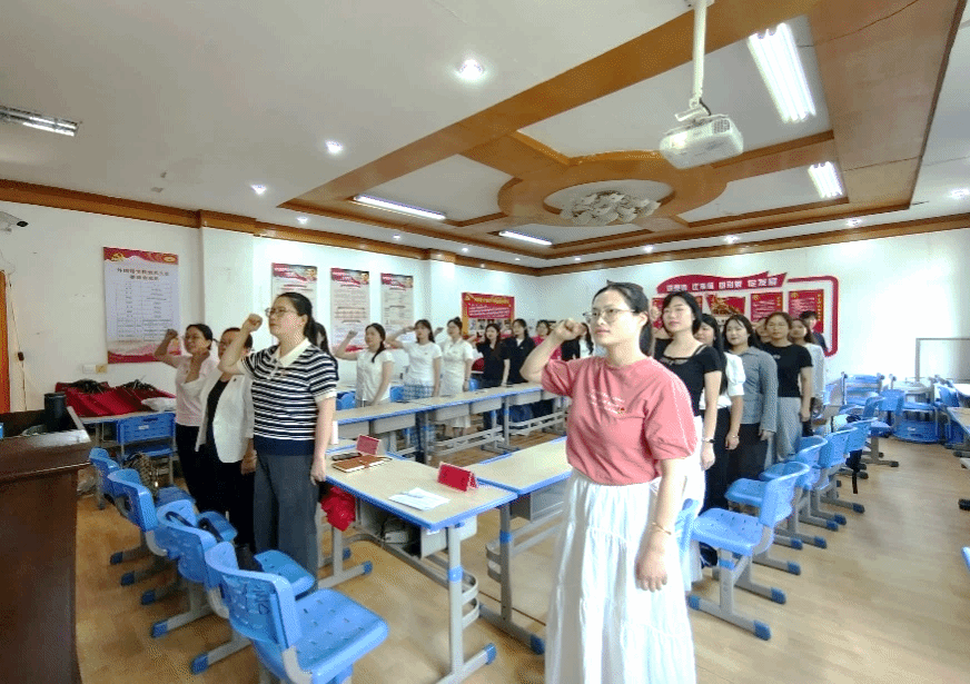 随后,学生第二党支部书记龙立平带领全体党员重温入党誓词,进一步强化党员的初心使命感。