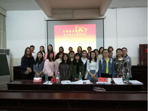 2018年4月11日晚,外国语学院党总支在播馨楼406举办2018年上半年学生党员发展答辩会。党总支书记胡瑾、副书记刘莉老师,学生党支部书记阳青、赵杨、龙立平及所有学生党员出席了本次答辩会。