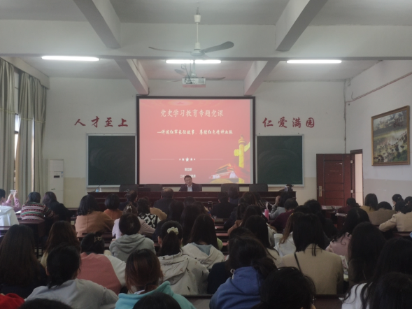 为深入开展党史学习教育,4月27日下午,学院党总支书记阳立新在播馨楼406会议室为全院师生党员上了一堂“讲述红军长征故事,赓续红色精神血脉”的专题党课。
