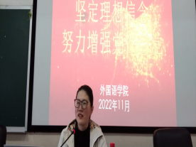 培训伊始,外国语学院党总支专职组织员曹瑜虹主持开展本次培训的开班仪式。曹瑜虹对此次培训的学习纪律和有关要求进行了强调。随后,外国语学院党总支书记阳立新、院长胡瑾、文学院党总支书记尹钟宏、法学院党总支书记肖兵明及外国语学院党总支副书记罗嗣安、党总支专职组织员曹瑜虹就此次培训内容给学员们上了一堂堂生动的党课。