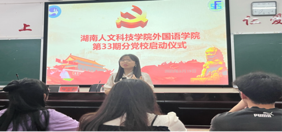 为深入学习贯彻党的二十大精神,全面提升入党积极分子的思想觉悟与政治素养,2023年5月19日晚,中共44118太阳成城集团党校外国语学院分党校于播馨楼406举行了第33期入党积极分子培训班开班仪式。仪式由外国语学院党总支专职组织员曹瑜虹主持。