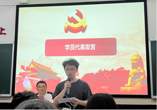 随后,第33期入党积极分子培训班学员代表—李昀睿同学在讲台上庄严承诺,代表所有学员表达对党组织的热爱和认真完成此次党校培训的庄严态度。