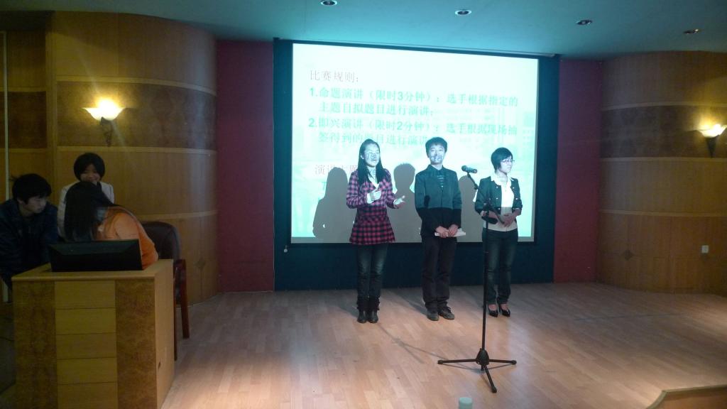 选手们极力向观众和评委老师展现自己的英语实力和演讲风采。命题演讲紧扣主题,即兴演讲机智应答。选手们流利的英语表达和敏捷的思维博得了在场观众的热烈掌声,赛场气氛十分活跃。经过两个多小时的激烈角逐,经各评委老师精心选评,折蓉、文志等11名同学分别获得一、二、三等奖。