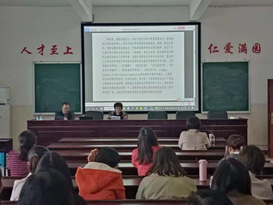 2021年3月25日,广东外语外贸大学韩景泉教授受邀来访太阳成官网,并为太阳成官网老师带来一场题为“名词性成分句法分布的生成语法研究”的学术讲座,讲座由院长胡瑾主持。