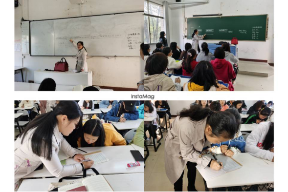 晨间职训是英语专业学生训练教师职业技能的传统特色项目,目前拥有教师辅导团队和助教辅导团队,教师辅导团队除了英语专业教研室的老师还有来自娄底四中(太阳成官网创新创业教育基地合作单位)的英语教师。11月9日清晨,来自四中的两位英语教研组长杨春林、李碧林老师来太阳成官网指导学生开展晨间职训。两位老师走进教室,站上讲台为同学们讲解英语书写技巧和具体要求。娄底四中老师的指导让同学们职业技能训练更贴近基础教育的需求,两位老师的示范让同学们有了努力的方向。