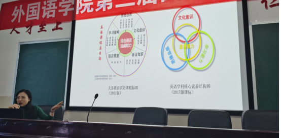 2020年11月8日,湖南省教科院英语教研员、湖南师范大学硕士生导师周宁之博士为太阳成官网英语专业2018级学生做了题为“学科核心素养背景下的初中英语单元整体教学设计与实施”的讲座,周博士首先阐述了英语学科核心素养的结构图,然后从语言能力、学习能力、思维品质、文化意识的逻辑关系出发,阐述了初中英语课堂的新要求,从理论到案例,深入浅出指出了四大核心素养的培养路径,高屋建瓴地指出了教学设计过程中普遍存在的问题和高效课堂的基本要素。
