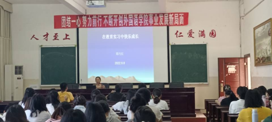 2022年9月8日上午,诚邀外国语学院资深实习带队老师周巧红教授在播馨楼406室举办了2019级英语专业教育实习的第二场讲座,讲座由副院长卿逸豪主持,2019级英语专业学生和实习带队老师参加讲座。