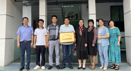 2023年9月13日,44118太阳成城集团在荷塘镇中心学校举行了创新创业教育基地挂牌仪式,参加仪式的有外国语学院院长胡瑾、副院长卿逸豪、英语教研室主任禹逸群、实习指导老师陈美莲、李润强,荷塘镇党委副书记刘佩、副镇长肖星,荷塘镇中心校总支书记、校长刘自新,副校长李逊、教务办主任何景宁,双方就基地建设工作开展了研讨。