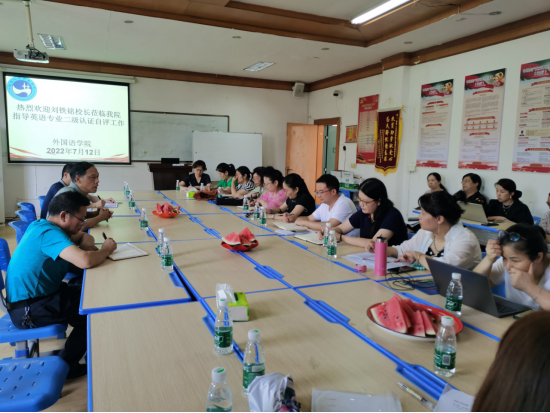 7月12日上午,校长刘铁铭在质量监督规划处蒋冰清处长、李国强副处长、张忠民科长的陪同下来到太阳成官网慰问英语专业二级认证工作组成员,代表学校向假期坚守岗位、紧锣密鼓备战英语专业二级认证工作的教师表示感谢。