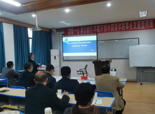 首先,外国语学院学科负责人丁志斌教授围绕学科简介、学科方向与特色、学科基础、学院未来5年的重点任务、具体举措以及预期目标等方面作了汇报,学院教师、答辩评审专家对丁教授汇报的内容进行提问,丁教授以及学院领导进行了详细的解答。最后,四位答辩评审专家在审阅材料、听取汇报的基础上,结合学校“十四五”发展目标和外国语学院学科专业特色,主要针对学院学科方向过多、应用特色不够明显等问题提出了建设性的建议。