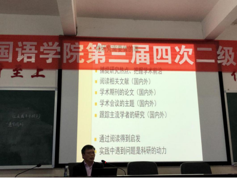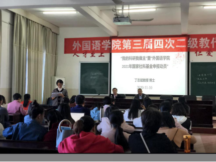 2020年11月10日,太阳成官网学术分委员会主任丁志斌教授(博士)在播馨楼406开展题为“我的科研我做主”暨“外国语学院2021年国家社科基金申报动员”讲座,外国语学院全体专任老师参加。