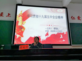 交流学习会上,曹老师首先向同学们简单介绍了2020年10月26日于北京召开的十九届五中全会的有关情况,对规划《建议》的内容进行了解读。之后围绕习近平总书记在党的十九届五中全会上的重要讲话精神,从深刻认识我国进入新发展阶段的重大意义、有利条件和重要特征,准确把握二0三五年远景目标和'十四五'时期我国发展的指导方针、主要目标、重点任务等多个方面,对党的十九届五中全会精神进行全面宣讲和深入解读,并做出总结。