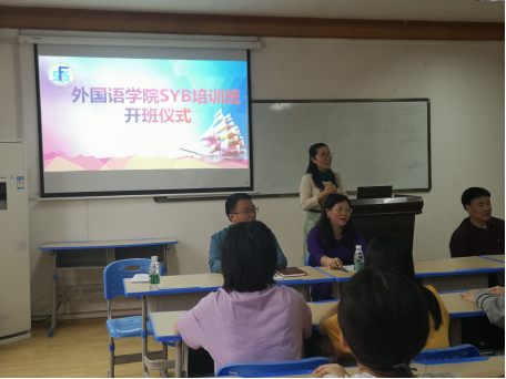 2021年5月7日下午,外国语学院在播馨楼301举行2021年第一期SYB培训班开班仪式。创新创业学院院长刘红燃、副院长刘盛愚、高级讲师丁剑、外国语学院院长胡瑾、党总支书记阳立新、班主任朱倩以及30名学员参加。会议由阳立新书记主持。