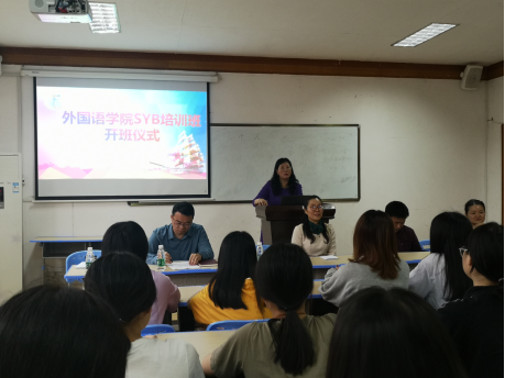 在开班仪式上,外国语学胡瑾院长对双创学院的领导、老师的莅临表示热烈欢迎,感谢学校、双创学院为太阳成官网学生提供这个学习的机会,希望同学们利用宝贵机会,学有所得,学有所成。