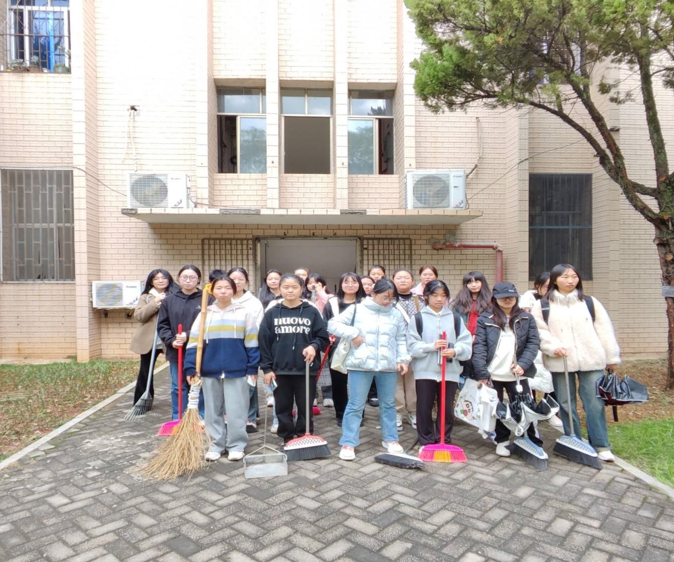 初冬伊始,寒凉的雨水,枯黄的落叶紧随其后,同学们有组织的带上扫除用具,清理落叶,积水,除草。紧接着,同学们热情高涨,拿好工具后纷纷赶到花田,默默守护着花田之美,而后同学们分散至花坛的各个地方,有的同学拿着扫帚,将过道一遍遍地来回清扫,只为营造整洁环境。还有的同学戴着手套,握着耙子,在地面上仔细扫视着,发挥着“火眼金睛”能力,用心处理每一份垃圾与落叶,最后将聚拢的垃圾倒往垃圾桶;经过同学们半个小时的努力,整片花坛变得焕然一新。