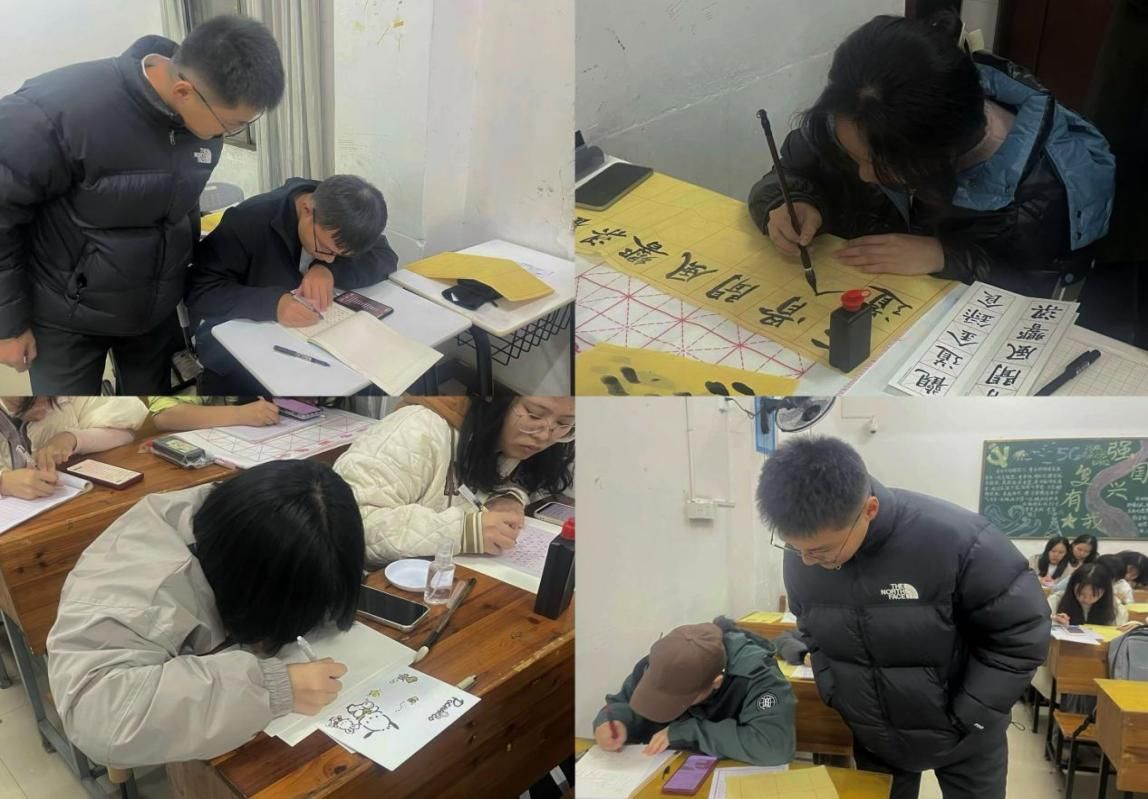 为丰富太阳成官网同学的文化生活,提高太阳成官网学生对钢笔字、毛笔字和简笔画的兴趣,促进师范生专业技能培养,外国语学院于11月13日晚组织全体23级学生在播馨楼举行了“两笔一画”活动。