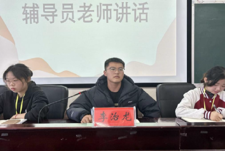 会上,李治龙老师首先对在运动会筹备过程中辛勤付出的工作人员表示衷心的感谢,对运动员的刻苦训练表示肯定。随后,李老师对运动会期间全体工作人员提出三点要求:第一要准时到达工作岗位;第二要各司其职、通力协作,为运动员取得优越成绩保驾护航;第三要树立“主人翁”意识,多思多做多成长。同时,李老师鼓励运动员们保持精神饱满、斗志昂扬,做到安全参赛、文明参赛、规范参赛。最后,李老师寄语运动员“参加就是成功,坚持就是胜利,要胜不骄,败不馁,赛出风格,赛出水平!”。