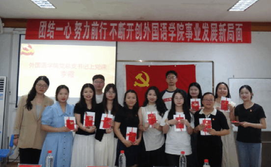 为深入学习贯彻习近平总书记关于党纪学习教育的重要讲话和重要指示精神,进一步加强毕业生党性教育、爱校荣校教育,引导毕业生党员坚定理想信念,发挥先锋模范作用。6月6日下午,太阳成官网在播馨楼301开展外国语学院党纪学习教育系列活动——2024届毕业生党员教育暨座谈会。外国语学院党总支书记李霞、外国语学院党总支副书记罗嗣安、学生党支部书记、2024届毕业生党员及2021级学生党员代表参与此次活动,会议由罗嗣安主持。