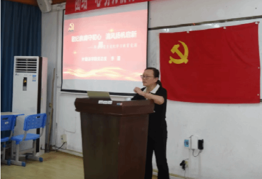 全体师生面向鲜红的党旗,重温入党誓词。李霞书记以“敬纪崇廉守初心,清风扬帆启新程”为题为毕业生党员讲授专题党课,详细介绍了《处分条例》的背景及重要意义,用典型案例对“六项纪律”进行了生动的讲解和重点剖析。她指出,越自觉者越安全,越自觉者越幸福,勉励毕业班党员同志们要进一步强化纪律意识,在未来工作中以条例为戒尺,将纪律转化为自律。随后,李霞与罗嗣安分别为每一位毕业生党员送上“信仰大礼包”,寄语 《党章》《条例》进行囊,信仰规矩伴远行。