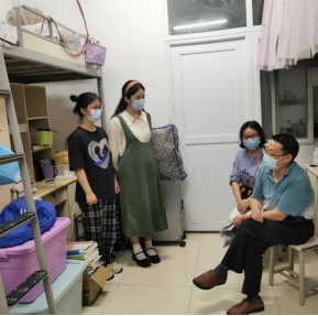 2022年4月27日,校党委副书记李军林带领机关教辅部门领导以及外国语学院领导班子、辅导员、毕业班班主任一齐前往外国语学院毕业生宿舍进行就业创业指导与帮扶,并开展常态化疫情防控教育主题交流活动。