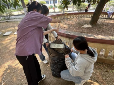 活动伊始,同学们在班委的带领下领取了劳动工具。领完劳动工具后,同学们奔向各自负责的区域。紧接着同学们各司其职,一些同学拿着扫帚清扫街道,另一些同学负责清理落叶。随后,工作逐渐接近尾声,同学们用垃圾袋将落叶装好,看着大家一起努力的成果,大家的脸上都洋溢着笑容。最后,由青工部的干事为大家拍了一张集体照后,本期的“守望花田”劳动实践教育活动也圆满结束了。