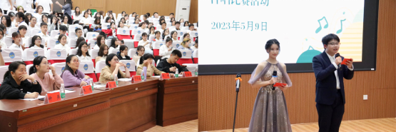 行程万里,不忘来处;信念如磐,一脉相承。为学习贯彻习近平新时代中国特色社会主义思想,坚定初心使命,激发学生学习英语的兴趣,丰富学生的英语学习生活,外国语学院于2023年5月9日晚在匠成楼报告厅开展了“青春献礼二十大,讴歌祖国新征程”英文合唱比赛活动。外国语学院院长胡瑾、党总支副书记罗嗣安、全体辅导员作为评委参加活动。同时,参赛班级班主任受邀出席。