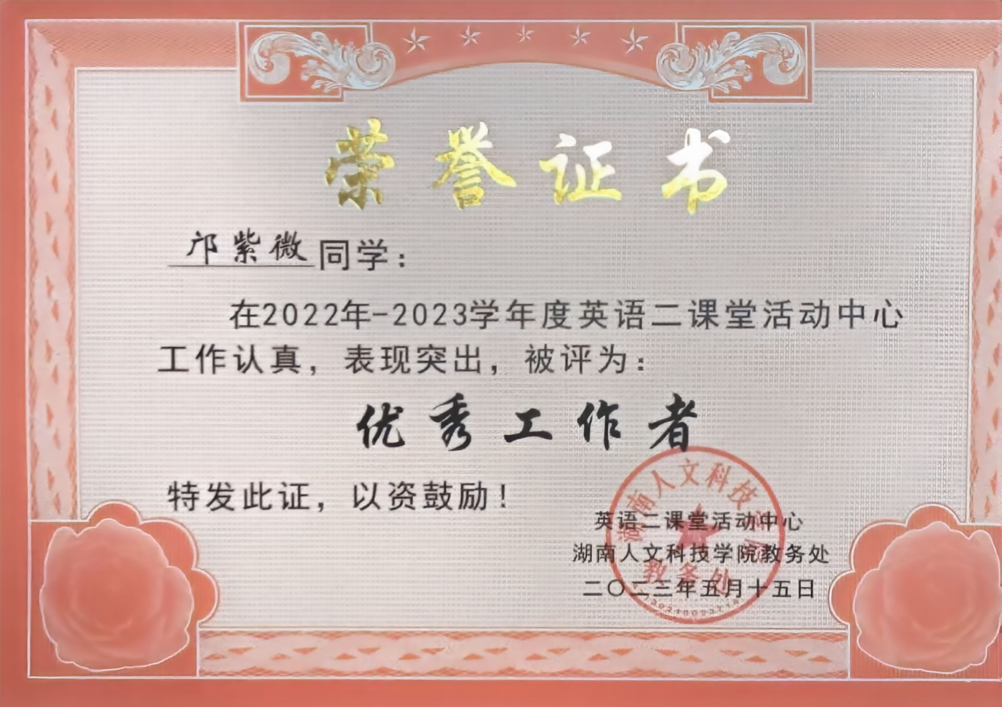 3.2022年-2023学年度“英语二课堂优秀工作者”