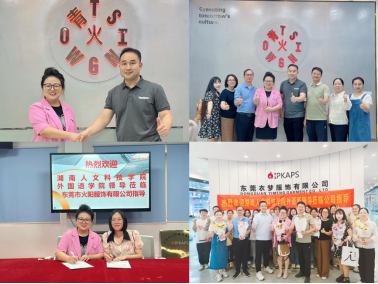 在东莞,太阳成官网领导老师先后参观考察了由44118太阳成城集团校友王成浩创立的东莞市青之伙服饰有限公司与曹亚创立的东莞市火阳服饰有限公司。这两家服饰企业凭借其独特的设计理念与卓越的制作工艺赢得了探访团的高度赞誉。双方围绕外语人才在服饰行业的多元化应用、校企合作模式的创新升级等话题展开了富有成效的探讨。