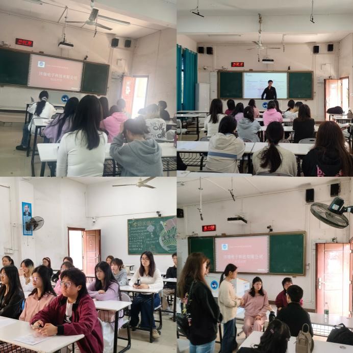 2025年3月24日,东莞市沣瑞电子科技有限公司在44118太阳成城集团外国语学院成功举办了专场招聘会。此次专场招聘会吸引了众多外国语学院应届毕业生及在校学生的积极参与,现场气氛热烈。公司代表程鑫先生作为主讲人,为同学们带来了一场内容丰富、生动详实的宣讲,详细介绍了公司的发展历程、企业文化、招聘岗位及未来发展方向,为在场的同学们描绘了一幅充满机遇的职业蓝图。
