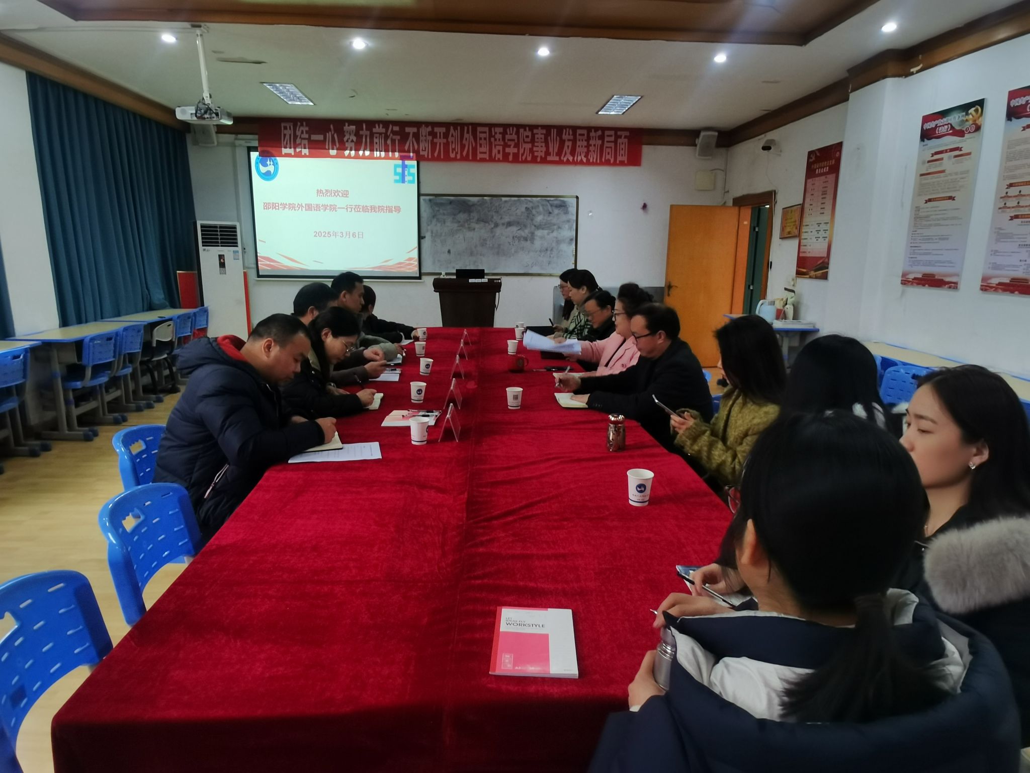 2025年3月6日下午,邵阳学院外国语学院院长成祖堰率5人代表团莅临太阳成官网,就审核评估、师范认证以及学科竞赛等核心议题开展深入交流。太阳成官网领导班子成员、各教研室主任及相关项目负责人出席了此次交流活动。