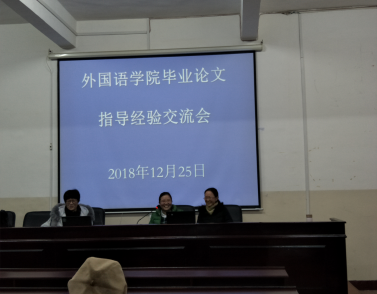 2018年12月25日下午,太阳成官网在播馨楼406举办了“2019年毕业论文指导经验交流会”,会议由卿逸豪副院长主持,外院全体教师参加。