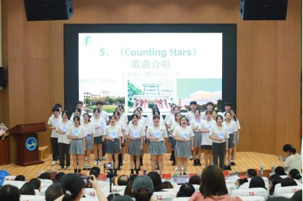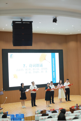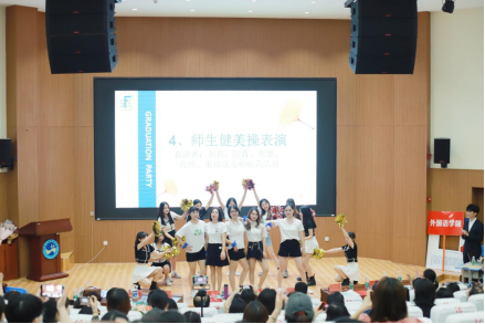 外国语学院院领导、毕业班班主任以及学弟学妹的毕业生祝福视频拉开了晚会的帷幕。院长胡瑾为此次晚会致辞,她寄语毕业生努力坚持,做最好的自己。党总支书记阳立新宣读2021届省校级优秀毕业生名单,副校长曹鑫、学工处处长李玲军、校友办主任刘莉为2021届上台为他们颁奖。随后,精彩纷呈的节目一一上演,师生们活力四射的健美操、领导老师饱含深情的诗朗诵《明天,你就要踏上征程》表达着老师们对毕业生的殷切期望;英文歌曲合唱《Counting Stars》、舞台剧《青春如梦》、拉丁舞表演《灯火里的中国》送上了对毕业生美好的祝福。在毕业生感言环节,他们诉说着在大学的收获和成长,表达了对母校的感恩、不舍之情。最后,晚会在毕业生带来的歌曲串烧中落下帷幕。