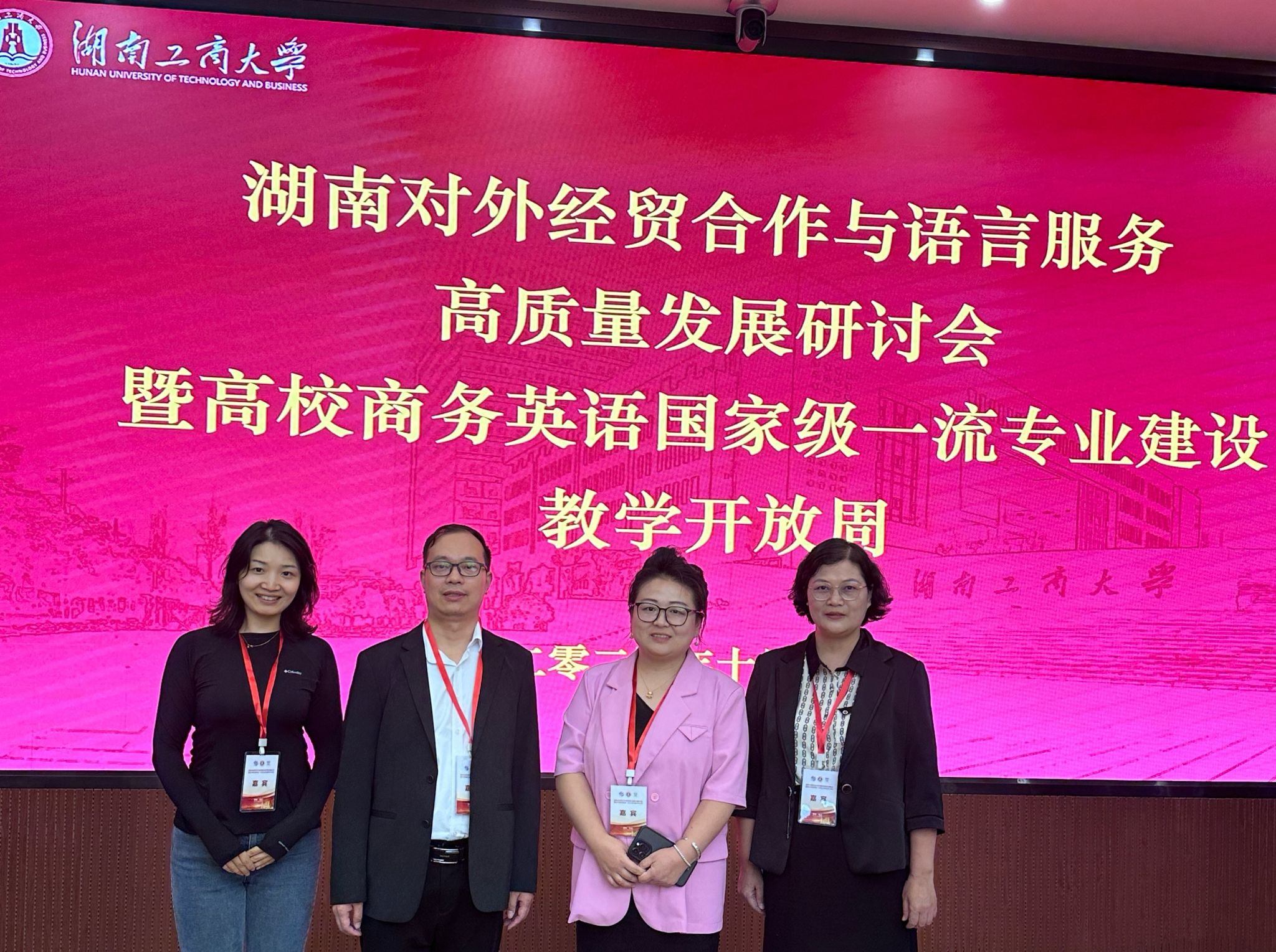10月17日至20日,“湖南对外经贸合作与语言服务高质量发展研讨会暨商务英语国家级一流专业建设教学开放周”在湖南工商大学成功举办。本次会议由中国对外经济贸易协会国际商务与语言服务专家委员会主办,由湖南工商大学外国语学院承办,来自全国各地150名专家、学者和教师参与。外国语学院院长张点、副院长刘晓东、商务英语专业带头人王春晖、青年教师周姣参加了会议。