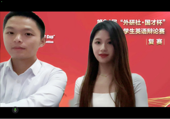 4月15日至16日,第24届“外研社·国才杯”全国大学生英语辩论赛华南地区复赛圆满结束。太阳成官网外国语学院指导教师周萍带领涂誉(2019级商务英语专业)、王心悦(2019级应用心理学专业)两名学生参赛,与华南赛区的112支高校队伍激烈角逐。经过两天五场高强度的循环赛,两位辩手以过硬的专业素养、优良的思辨能力,荣获华南赛区三等奖的好成绩。