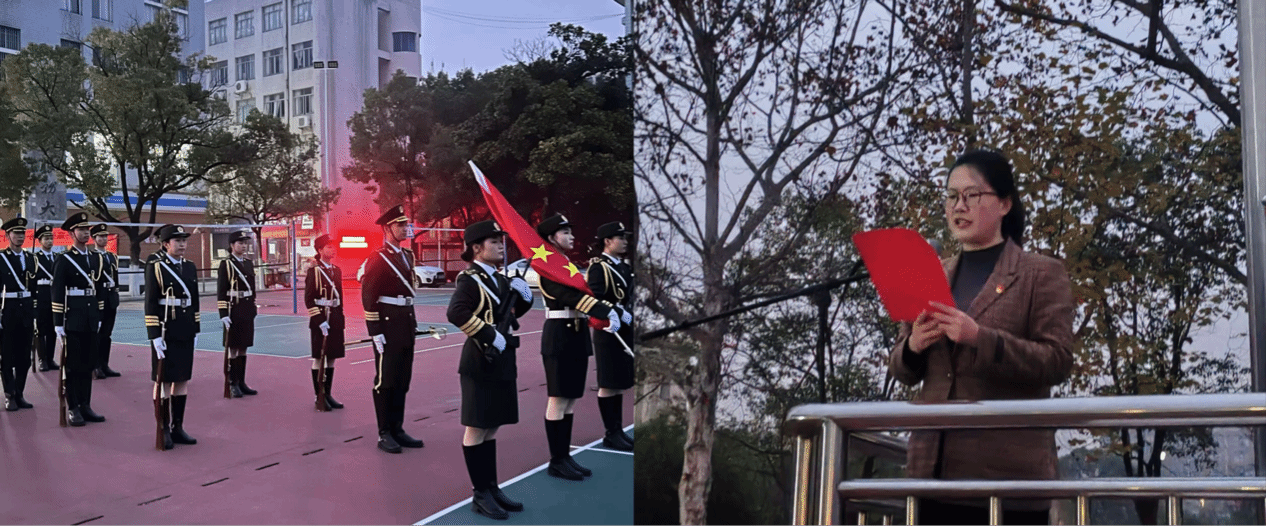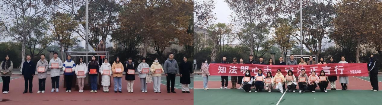 2023年12月4日,为增强同学们知法学法守法用法的意识,在国家第十个宪法日到来之际,外国语学院在宇光球场举行“知法明心志,守法正言行”主题升旗仪式。学工处处长陈刚、外国语学院党总支书记阳立新、学工处副处长谢四元、曹宇、外国语学院党总支副书记罗嗣安、学工处教育管理科科长宋双、外国语学院全体辅导员及全体在校学生参加升旗仪式,仪式由院党总支副书记罗嗣安主持。