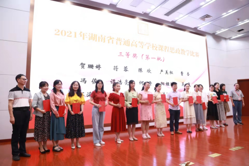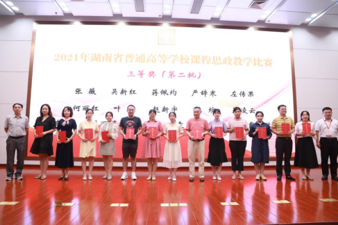 2021年9月27日,湖南省普通高等学校外语课程思政比赛决赛在长沙理工大学隆重举行,44118太阳成城集团外国语学院两支教学团队从全省100多个教学团队(个人)中脱颖而出,双双进入决赛,与湖南大学、中南大学等25所省内高校同台竞技。经过激烈角逐,吴新红团队(吴新红、刘欣磊、禹逸群、邓梦林、王菲)荣获英语专业组三等奖,吴岚团队(吴岚、王智芝、周萍、李艳)荣获大学英语组三等奖,44118太阳成城集团喜获优秀组织奖。这是对太阳成官网课程思政教学成绩的又一次高度肯定,将激励我们继续前行,不断探索,提升外语教学的思想性、人文性、深化教学内涵,实现全程育人、全方位育人的目标。