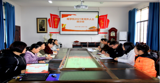 12月17日,商学院在高韵楼309会议室召开2021年党外人士座谈会,学院各民主党派、知联会、无党派人士等9位代表参加了座谈。党总支书记刘辉、副书记胡益龙出席座谈会,统战委员、副院长刘加林主持。