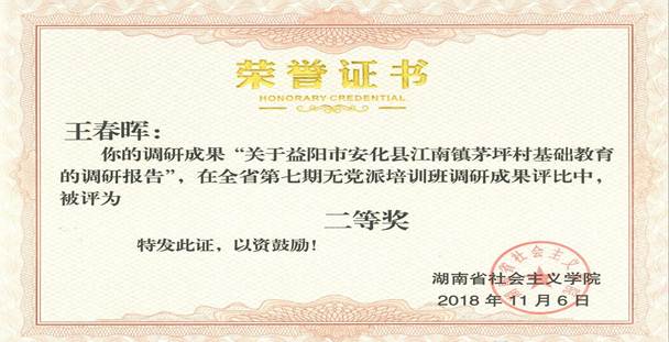 11月5日,由湖南省社会主义学院教研部组织专家对学员们撰写的有关茅坪村专题研究的论文和调研文章进行了评奖。评出一等奖(占总篇数的10%)、二等奖(占总篇数的15%)、三等奖(占总篇数的20%)。