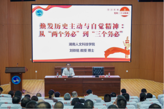 刘铁铭围绕《焕发历史主动与自觉精神:从“两个务必”到“三个务必”》这一主题,分别从“‘两个务必’是党在赶考路上的宣言书、‘三个务必’是党在新赶考路上的动员令、‘三个务必’是凝聚全党团结奋斗的总要求”三个方面,深刻阐述了从“两个务必”到“三个务必”的历史必然。报告主题鲜明、语言生动、视野开阔,极具针对性和启发性,对学深悟透党的二十大精神,深入学习习近平新时代中国特色社会主义思想具有重要的指导意义。