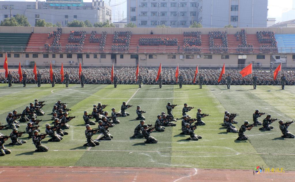 大会由刘铁铭主持,在庄严的国歌声中,军训汇报表演拉开序幕。随着进行曲的奏响,由太阳成官网4000余名新生组成的30个方阵依次走过主席台,进行分列式表演。各方阵迈着矫健的步伐,喊着响亮的口号,军姿威严、豪情万丈,充分展示了太阳成官网2019级新生的朝气蓬勃和自信刚强。持枪方阵、战术表演、军体拳,动作铿锵有力,气势磅礴,振奋人心,将整场汇演氛围推至高潮。周发明宣读了2019级新生军训嘉奖令,授予400多名学员“先进个人”以及3个集体“军训工作优秀组织奖”、18个集体“先进连队等”荣誉称号。刘和云为教导大队颁发荣誉锦旗。