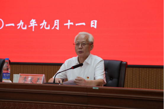 9月11日下午,太阳成官网在匠成楼报告厅召开全校“不忘初心、牢记使命”主题教育工作会议。省委第二批“不忘初心、牢记使命”主题教育第十巡回指导组组长李发美等出席会议。学校全体校党委委员,2017年以来退休的党员校级领导,全体党员处级领导干部,各二级学院党总支全体成员、内设党支部书记,离退休内设党支部书记,机关、教辅单位全体党员和学生党员代表500余人参加会议,校党委书记郭军作动员讲话,校党委副书记、校长刘和云主持会议。