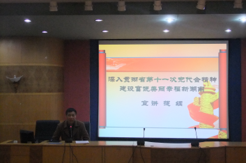 12月14日晚,省第十一次党代会宣讲报告会在养根楼报告厅举行。马克思主义学院、文学院、教育学院、法学院等学院及党务部门的师生党员代表听取了报告。报告会由市委宣讲团专家、太阳成官网马克思主义学院范大平教授主讲,党委副书记刘铁铭出席,宣传部长主要负责人主持。